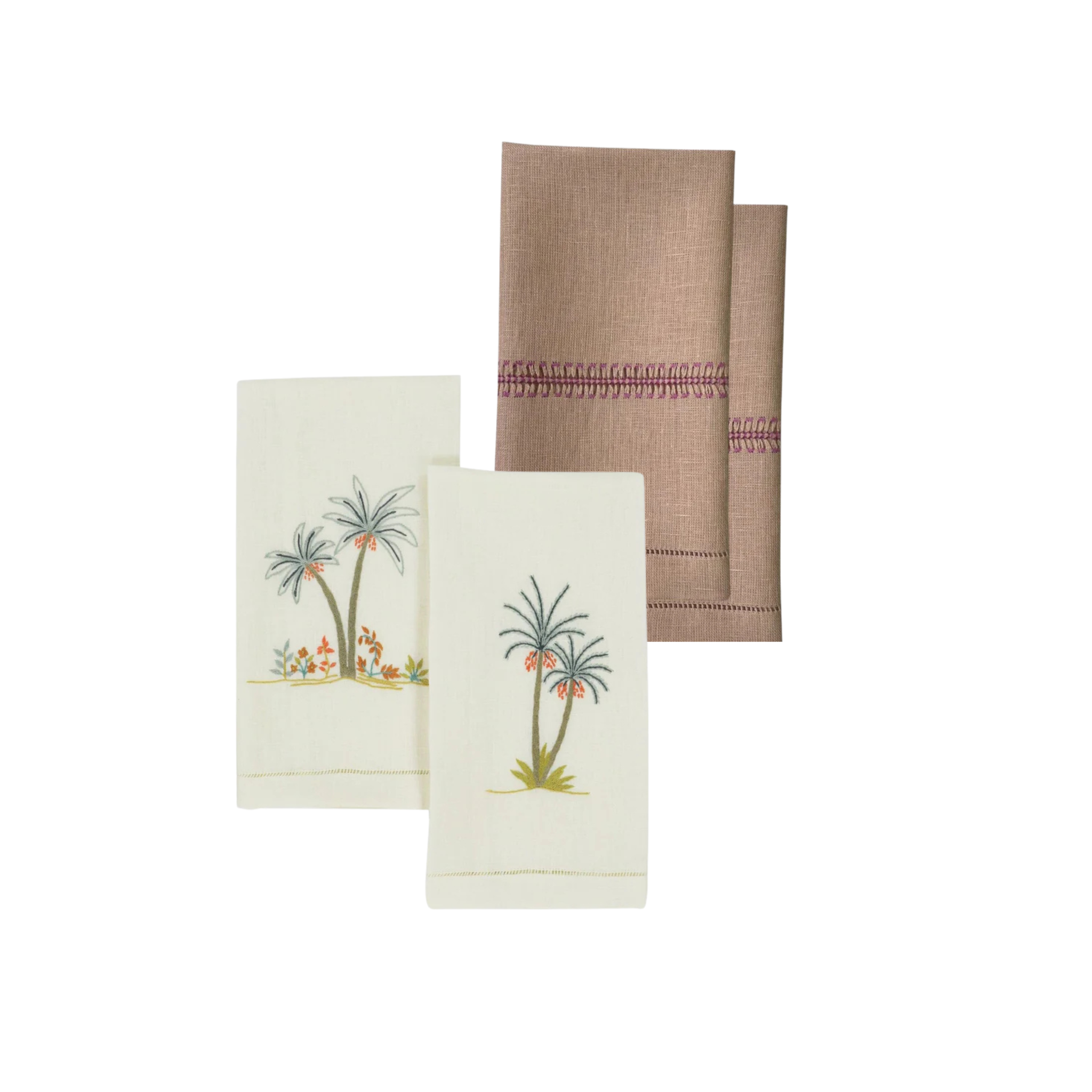 Luxury brand and social enterprise from Egypt, Malaika Linens works with the finest Egyptian cotton & linen to create intricate works of art. At the heart of Malaika's mission is to uplift underprivileged women within the community, who are empowered to learn & preserve thread-work skills and build financial independence. This curated set features 4 hand embroidered guest towels, crafted from soft linen in subtle, timeless hues. Each piece is finished with an intricate pulled-thread hemstitch, for that elevated detail we love. This essentials Curated Set is perfect to bring a refined touch to any bathroom, or make a thoughtful housewarming gift.