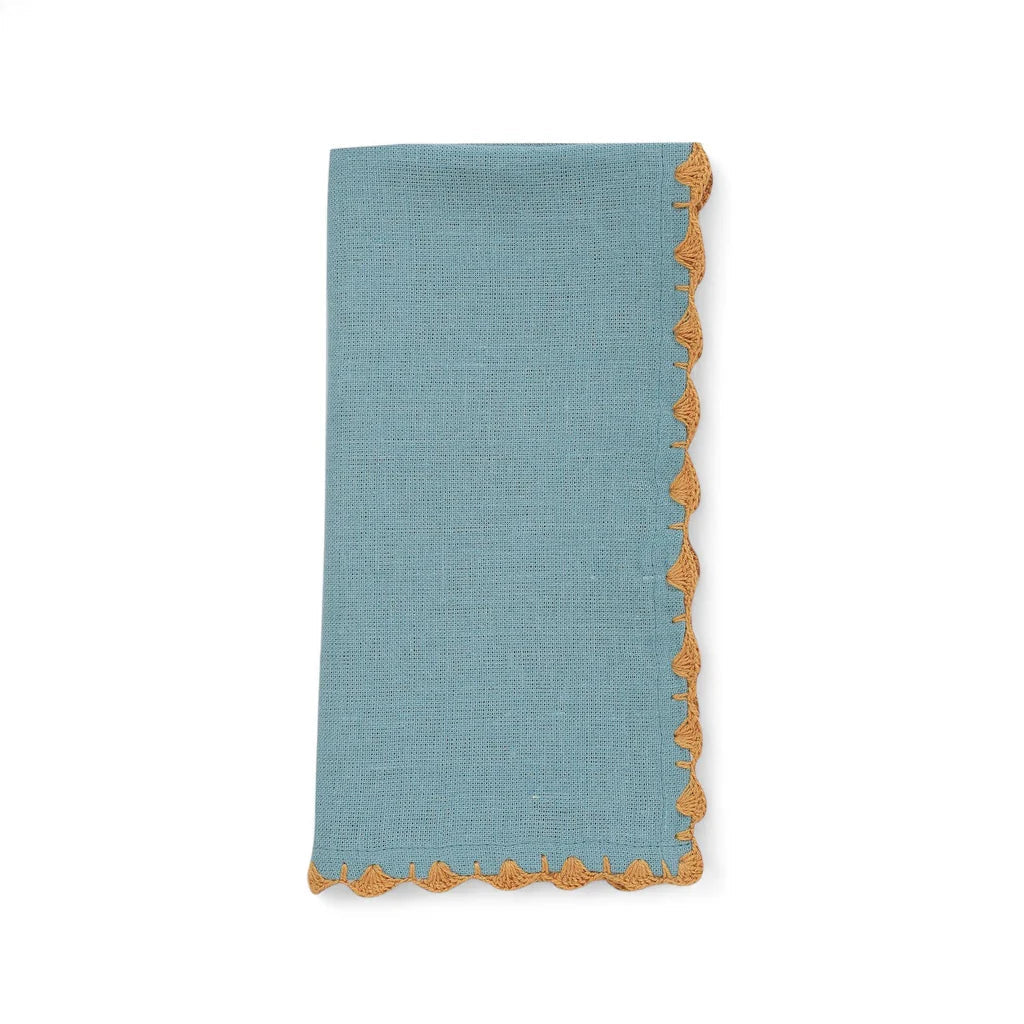 Luxury brand and social enterprise from Egypt, Malaika Linens works with the finest Egyptian cotton & linen to create intricate works of art. At the heart of Malaika's mission is to uplift underprivileged women within the community, who are empowered to learn & preserve thread-work skills and build financial independence. The Crochet Napkins by Malaika Linens  add a touch of handcrafted charm to tablescapes. Each napkin is finished with a delicate hand-crocheted border in a complementary hue, bringing a chic pop of color to your place setting.