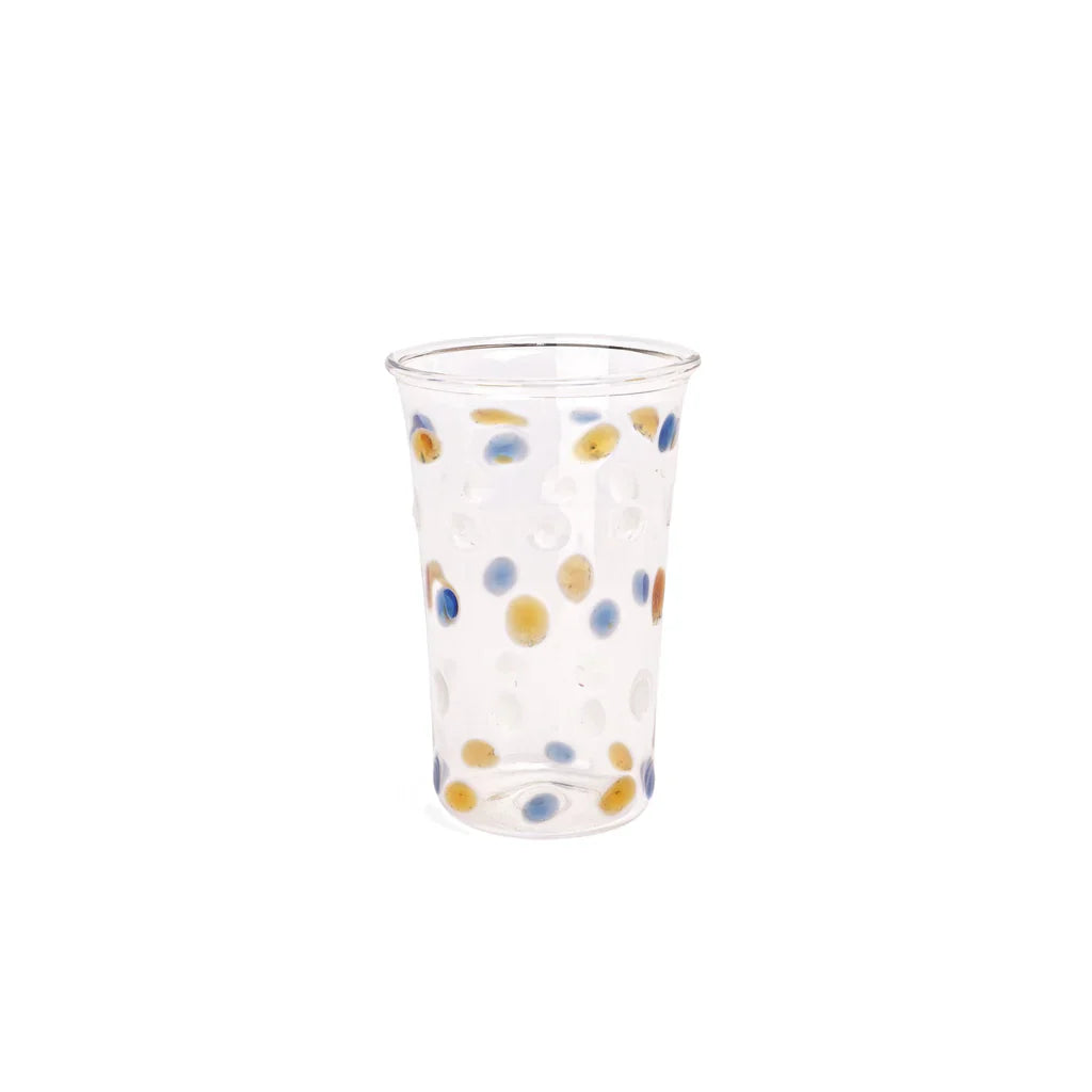 Decorated with a Polka Dot motif in a palette of beautifully luminous hues, the Dotty Glasses by Malaika Linens instantly transform the table, making even the simplest pour feel colorful and playful. Each piece is hand-blown by artisans in the heart of Historic Cairo, using a traditional glassmaking technique believed to date back to Ancient Egypt.