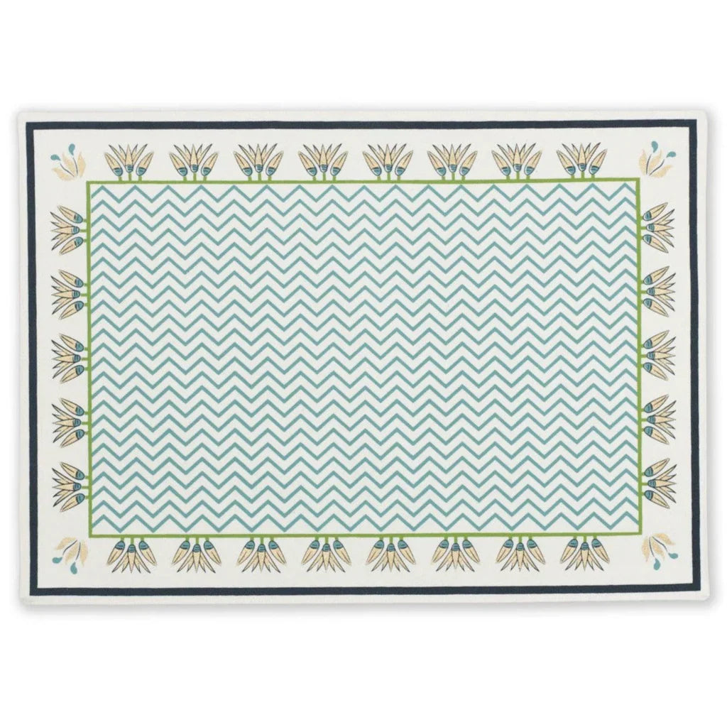 Luxury brand and social enterprise from Egypt, Malaika Linens works with the finest Egyptian cotton & linen to create intricate works of art. At the heart of Malaika's mission is to uplift underprivileged women within the community, who are empowered to learn & preserve thread-work skills and build financial independence. The Zig Zag Placemats are inspired by the ancient Egyptian hieroglyph for water. Their playful motif feels like an ode to long summer days. Crafted from natural Egyptian cotton canvas, each placemat is silkscreen printed, reversible, and machine washable—as practical as it is joyful, and made for everyday use with style.
