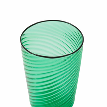 Introducing the Venezia Water Glass, where playfulness meets refinement with its twisted texture surface in a deep green hue. Crafted by Laguna~B's master craftsmen using centuries-old Murano glassblowing techniques, each piece embodies timeless elegance. A hand-painted black detail on the rim adds a modern twist to this classic form, making it a chic addition to any table setting, perfect for both casual gatherings and formal occasions.