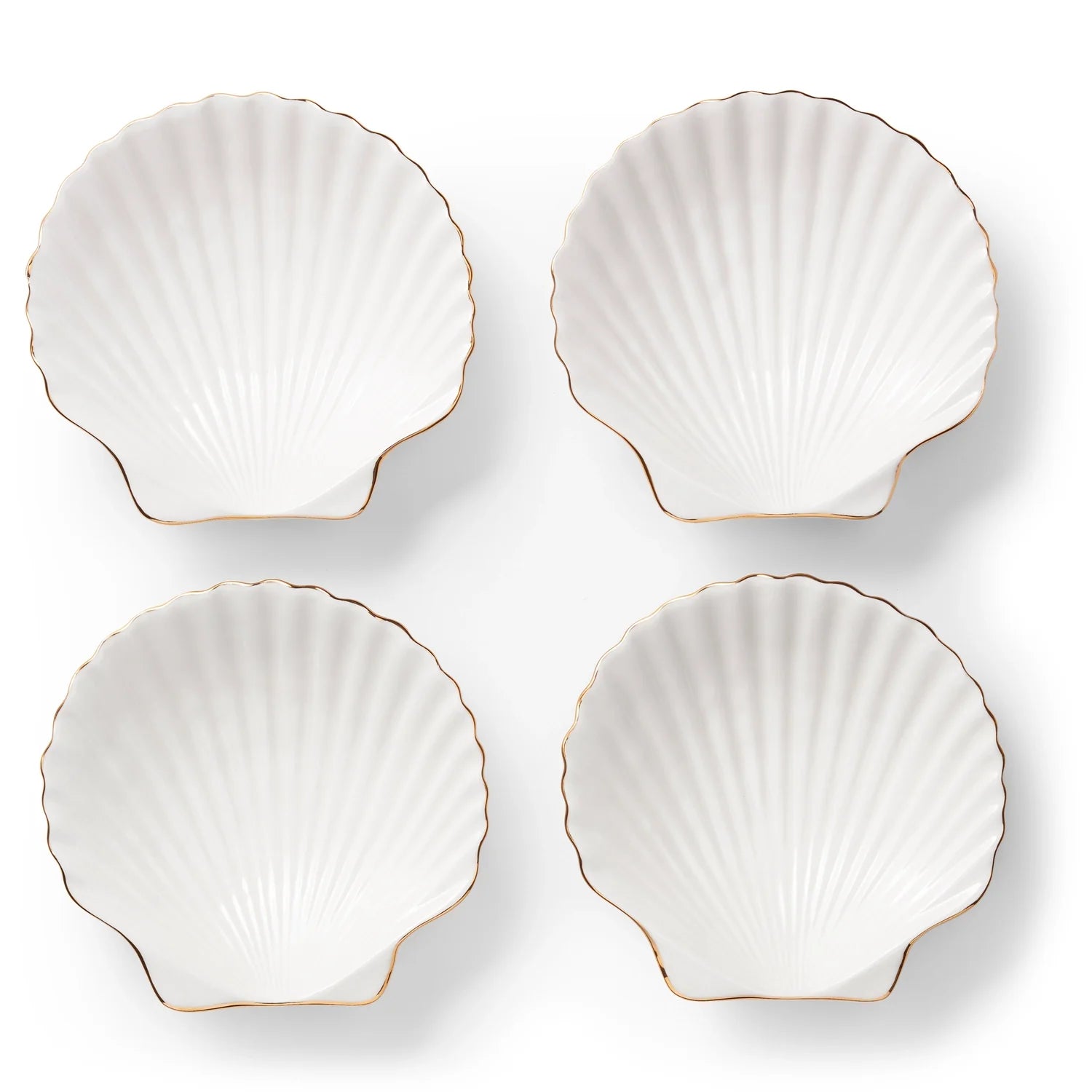 The Shell Appetizer Plates by AERIN beautifully capture the essence of coastal design, drawing inspiration from the graceful curves of a scallop shell. Elevated by a sophisticated gold edging, this set adds a touch of refined elegance to any table setting. The modern simplicity of the design allows it to seamlessly integrate into a variety of coastal-inspired tablescapes, making it a versatile choice for entertaining.